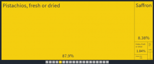آمار ذیل نشان دهنده میزان صادرات مواد غذایی ایران به چین است و همانطور که مشخص شده است سهم بالای صادرات به پسته تازه و خشک ، زعفران و خرما اختصاص یافته است.